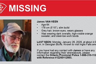 Grey Bruce OPP continued their search Wednesday for James Van-Veen, focusing efforts on the Inglis Falls Conservation Area. He was last seen early…