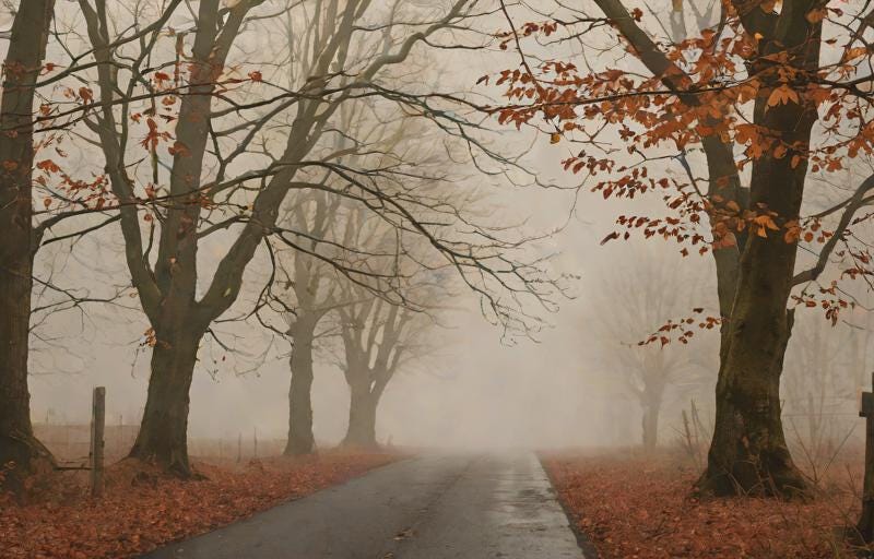 A misty grey morning. Not a breath of wind. Not a sound from the creatures who live here. It’s December, but the ground is bare of snow. The only ground cover a blanket of rust-coloured leaves. On this day that threatens rain, the birds are hunkered down in the shelter of cedar and spruce.