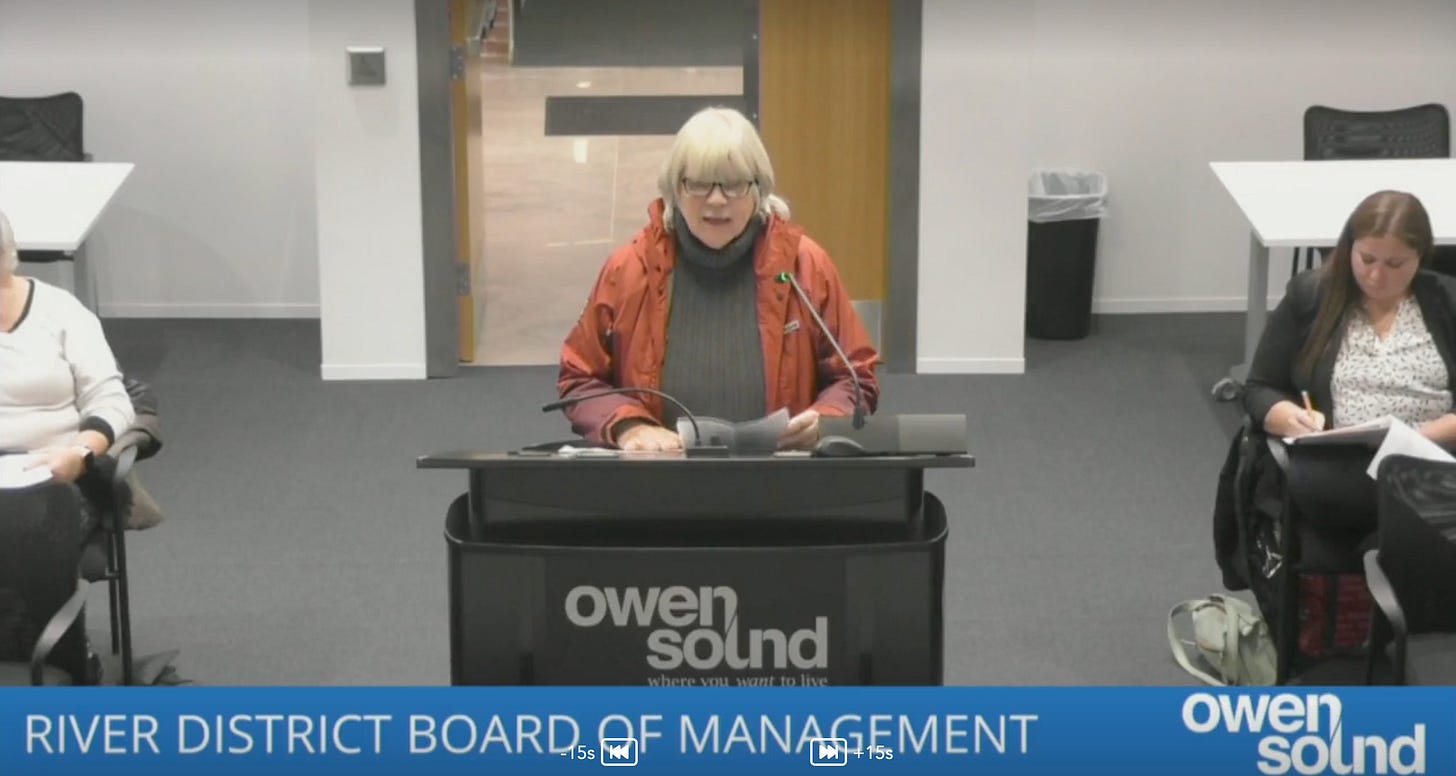 In November, I presented a brief to the City of Owen Sound’s River District Board, the body responsible for managing the DIA levy. The levy is the additional charge assessed to property owners within the River District boundaries.