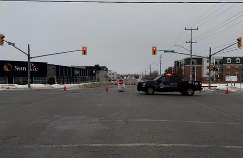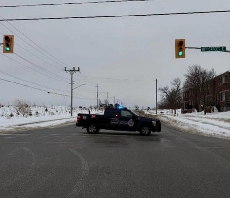 Police have not indicated when the intersection is expected to reopen. At 8:40 a.m. on February 18, Owen Sound Police confirmed the intersection of 10th St. East and 16th Ave East is still closed.