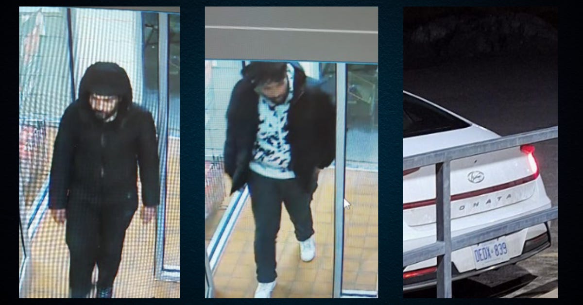 The suspects are described as South Asian males. One was wearing a dark winter coat, a white dotted sweater, and white shoes. The second was dressed entirely in black, including a puffy, hoodie-style coat.