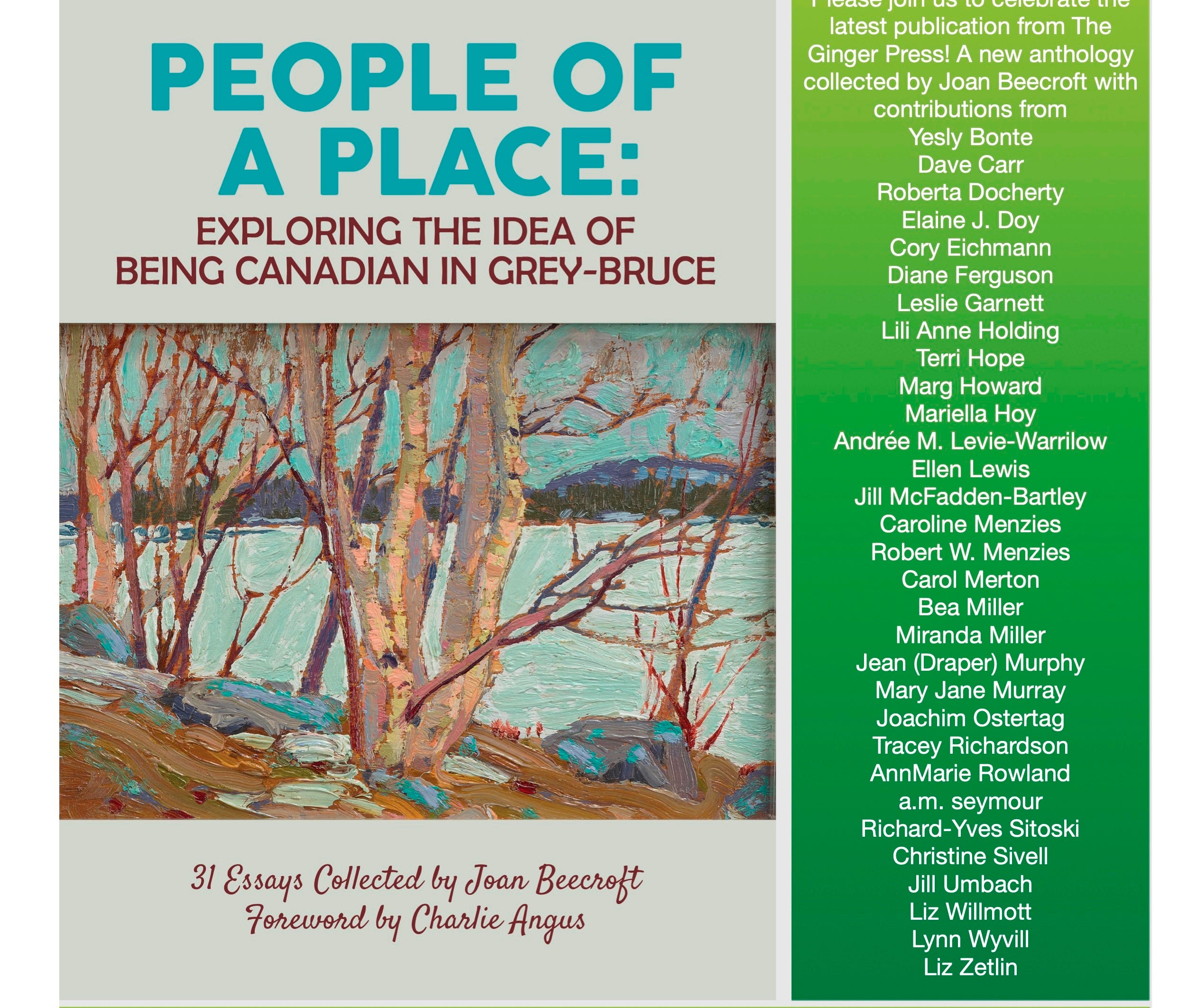 Thirty-one Grey-Bruce writers responded to the Call for Submissions sent out by Joan Beecroft last fall for her latest book titled People of a Place: Exploring the Idea of Being Canadian in Grey-Bruce. Many of them will be in attendance to read from their essays at the book launch at 2:30pm on Saturday April 25 at The Library.