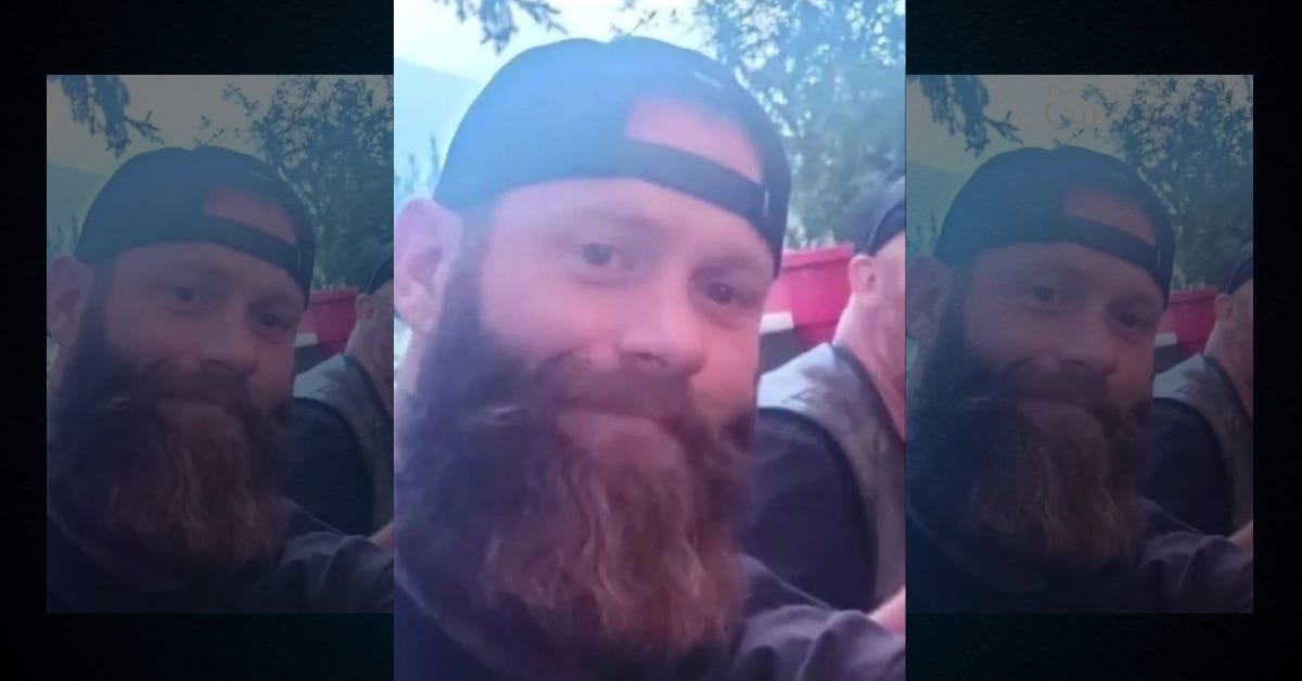 He is described as 6’3” tall with an athletic build, brown hair, a full beard, and several visible tattoos.