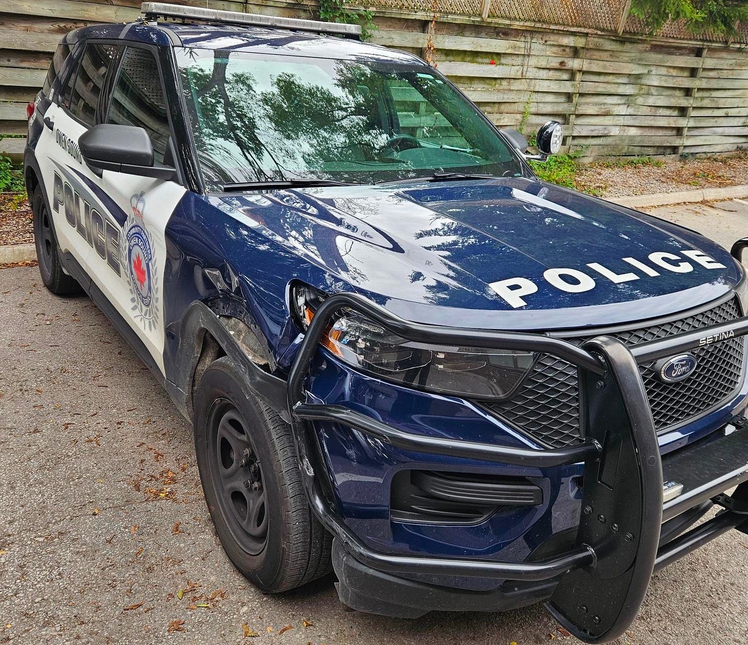 Police Chief Craig Ambrose said the bumper guard on the front of the police vehicle did its job of protecting the vehicle and internal components from damage. However, the bumperguard and mounts now need to be replaced.