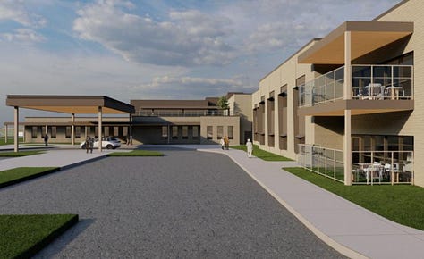 Project materials released by the County also describe design features intended to support infection prevention, privacy, dining, and resident movement through the building.