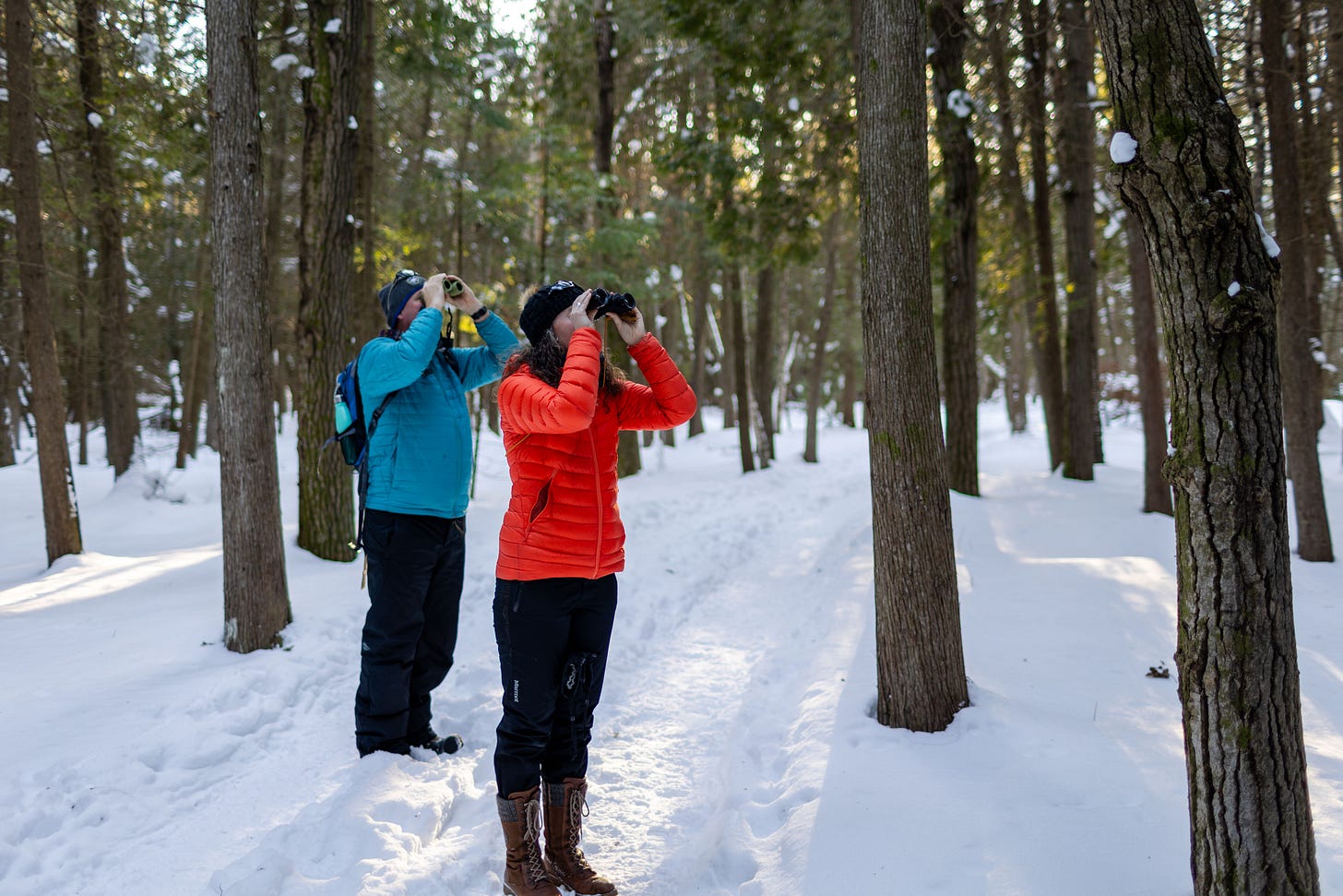 Winter is a great time to try bird watching. Less foliage makes it easier to spot birds. Visitors can borrow winter birdwatching kits and try bird bingo to help guide their experience. There are several other activities to learn more while hitting the trails, including matching animal tracks in the snow and identifying evergreens.